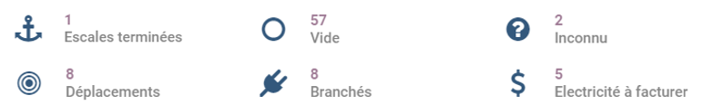 - Branchés : Nombre total de bateaux branchés à l'électricité