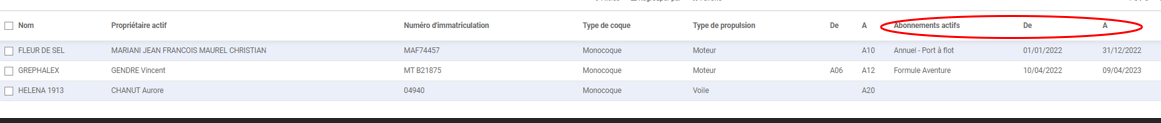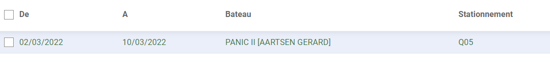 Si une escale sans date de fin avait été créée et que le bateau en question est pointé comme parti du port, l'escale sera automatiquement fermée à la date du jour. Il faut soit la facturer, soit la réouvrir si le client n'est pas parti.