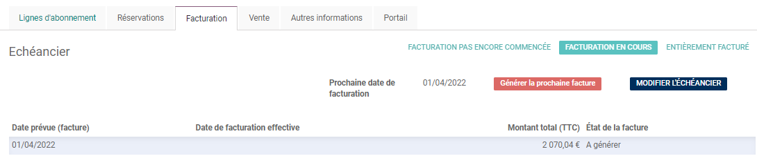 Ouvrir l'abonnement et cliquer sur Avenant au contrat.