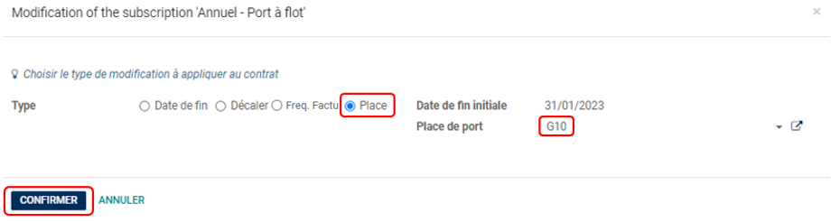 Choisir l'option Place et modifier la place puis cliquer sur Confirmer.