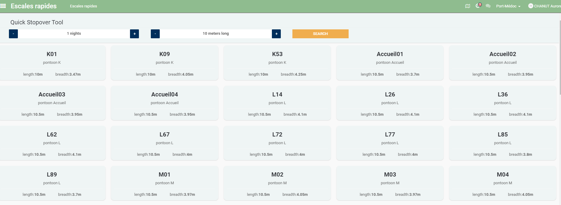 - A partir de ce nouveau module il est possible de créer des escales rapides en fonction des disponibilités.