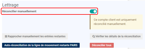 Dans la section Lettrage, activer le switch Réconcilier manuellement.