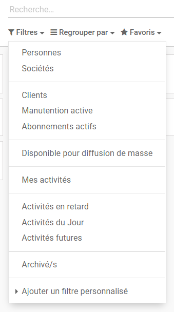 On retrouve dans quasiment tous les modules plusieurs outils pour faciliter une recherche.