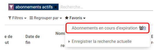 Les favoris permettent de sauvegarder une recherche spécifique.