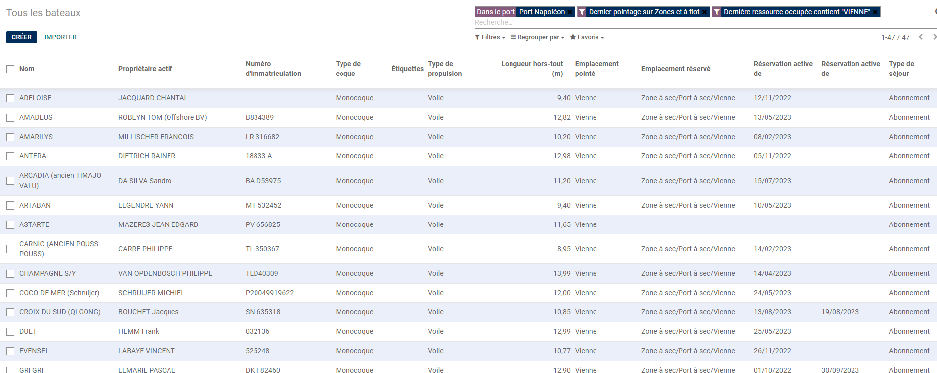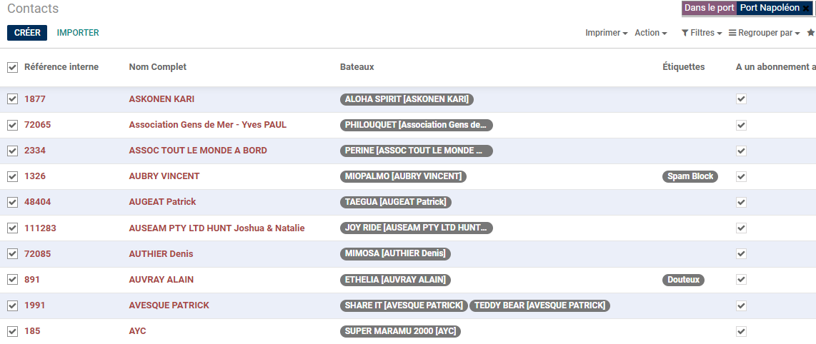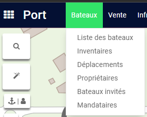 Cliquer sur Port /Bateaux/Liste des bateaux