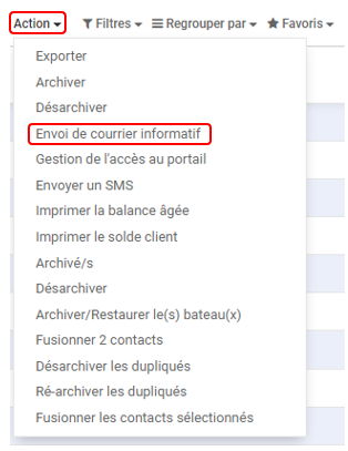 Cliquer sur Action, puis sur Envoi de courrier informatif.