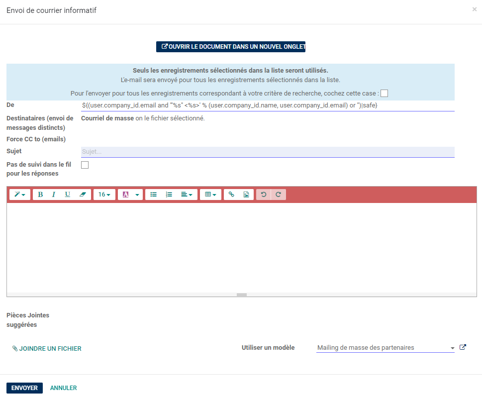 - Depuis le module de mails :