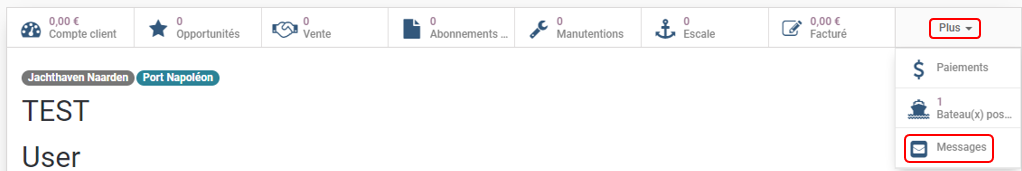 Les emails sont disponibles dans la catégorie Messages de la fiche client.