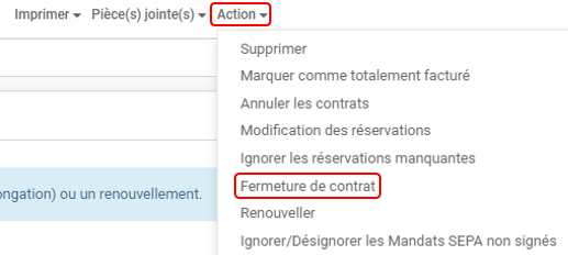 Cliquer sur Action puis sur Fermeture de contrat.
