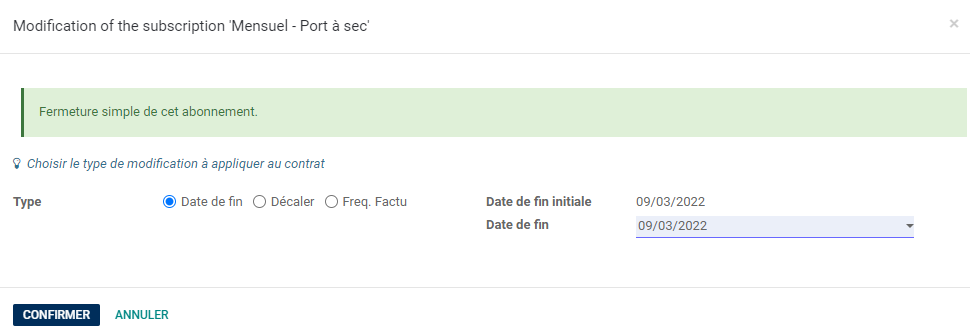 Choisir l'option Date de fin, entrer la date puis cliquer sur Confirmer.