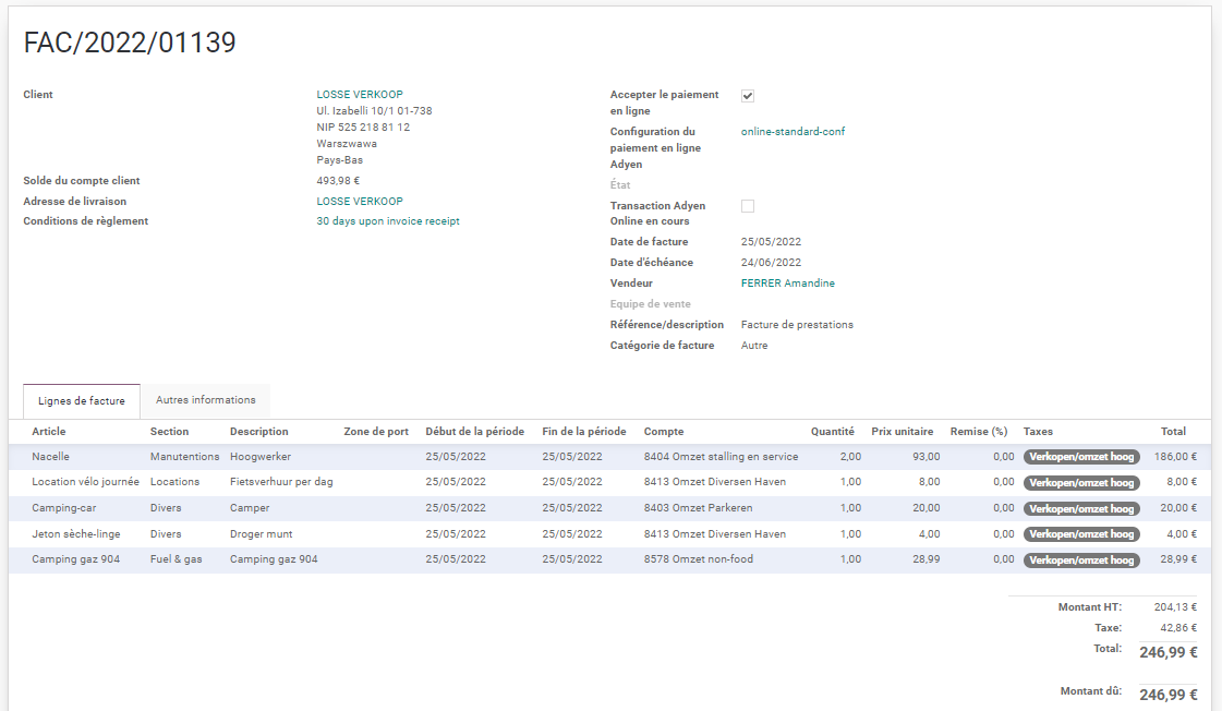 La facture est créée automatiquement sur un client divers. Selon la configuration, la facture peut-être validée automatiquement.