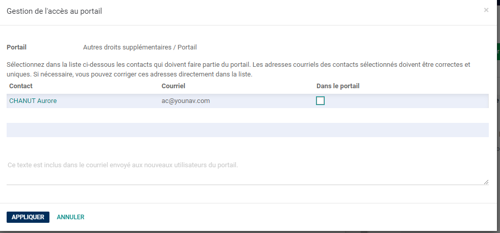 - Cocher la case Dans le portail