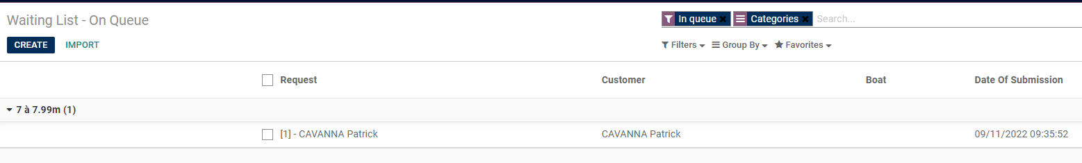 Pour les deux façons de procéder, la demande s'affiche dans la liste des catégories de listes d'attente qui auront été créées au début :