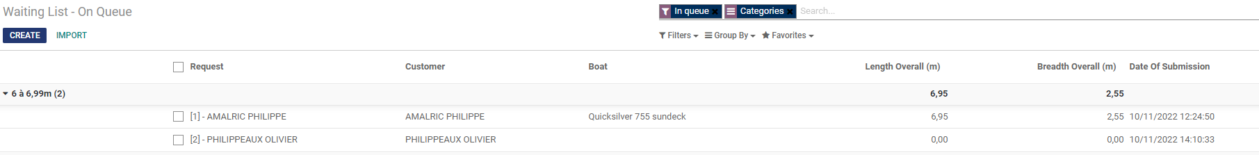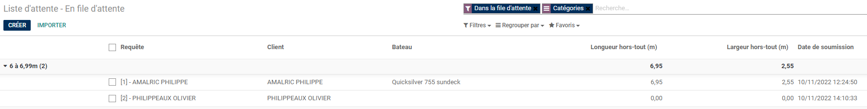 - Dans la vue liste ajout des champs "Longueur hors-tout" et "Largeur hors-tout" du bateau.