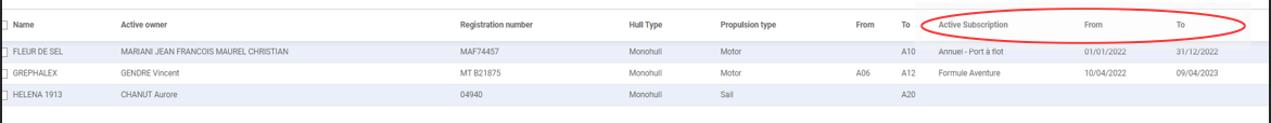 - Inventaire à sec : Possibilité de chercher par nom de bateau et possibilité de filtrer par ordre alphabétique.