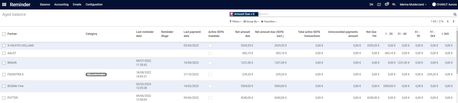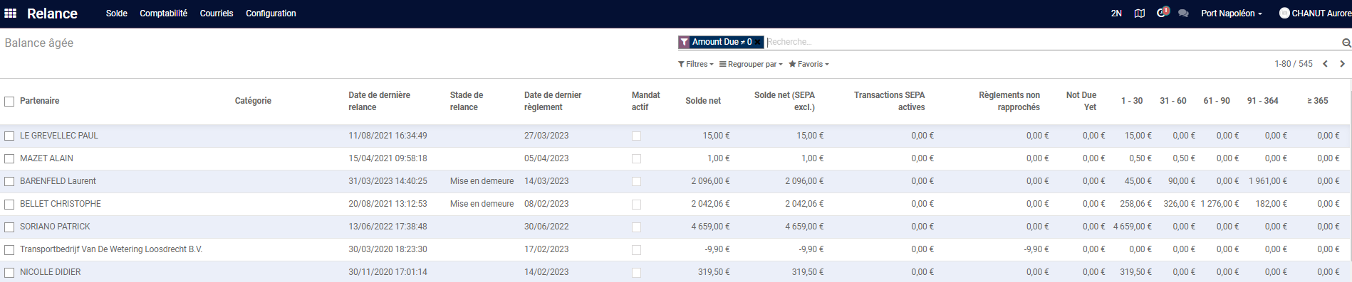 - Amélioration de la balance âgée pour une meilleure compréhension des montants qui sont dus et une meilleure visibilité.