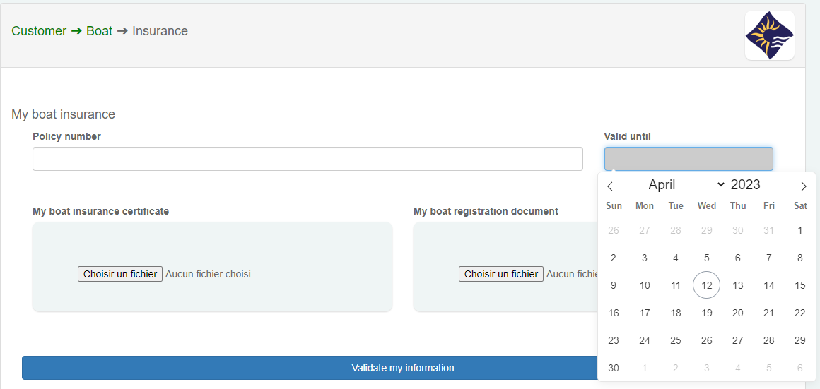 - Amélioration du champ "Date d'échéance" de l'assurance bateau grâce à un calendrier.