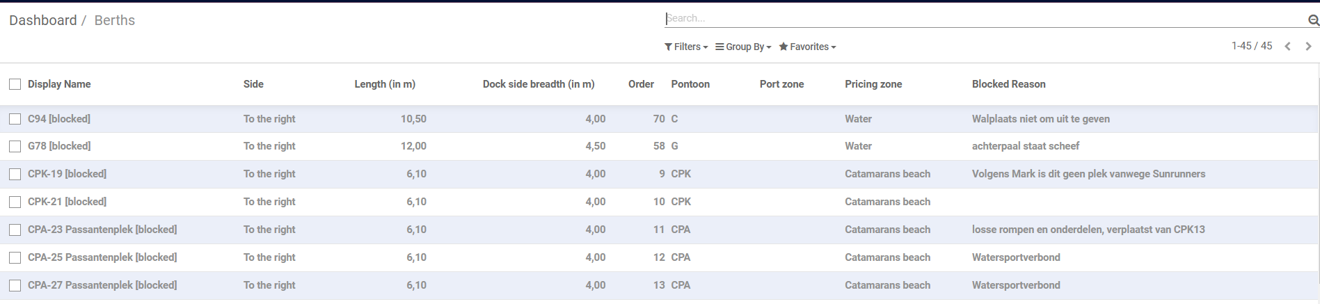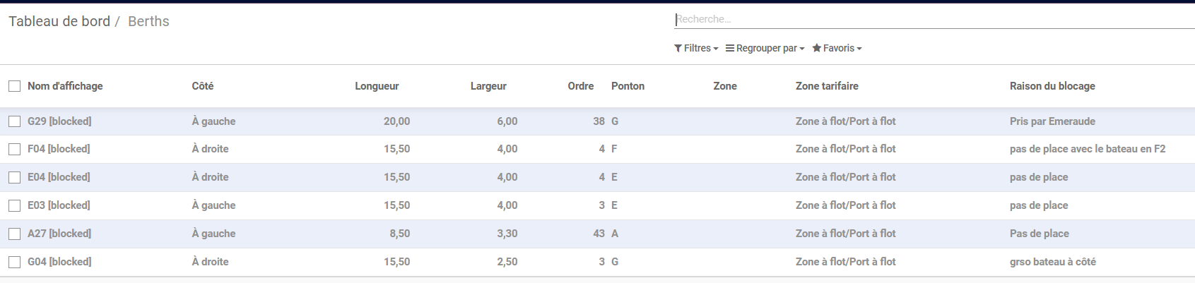 - Dans le tableau de bord, Places de Port, Places bloquées, rajout d'une colonne "Raison du blocage".