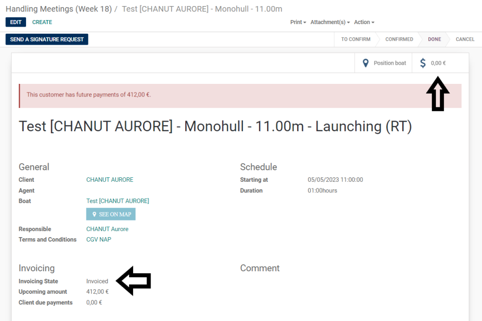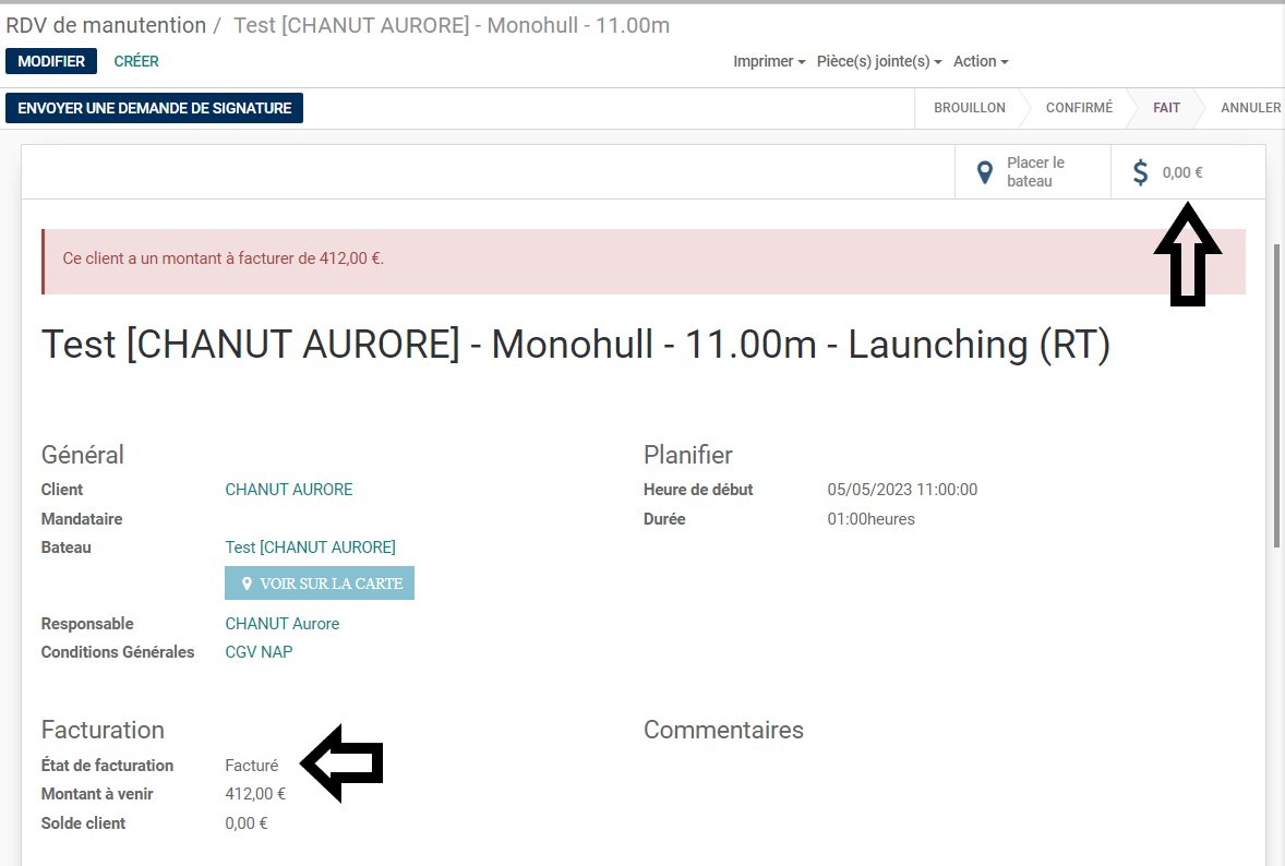 Le statut du SO passe en "Facturé" automatiquement.