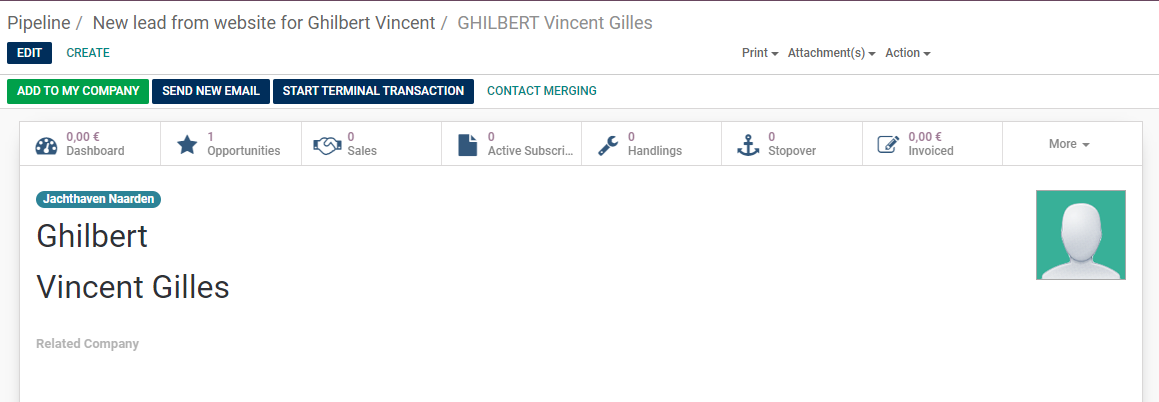 Sur cet exemple, le contact à une opportunités active à Naarden.