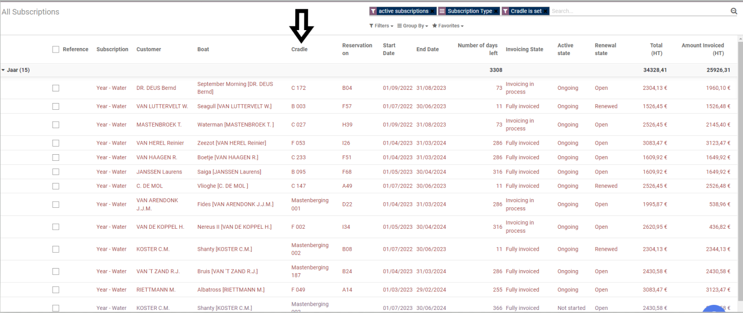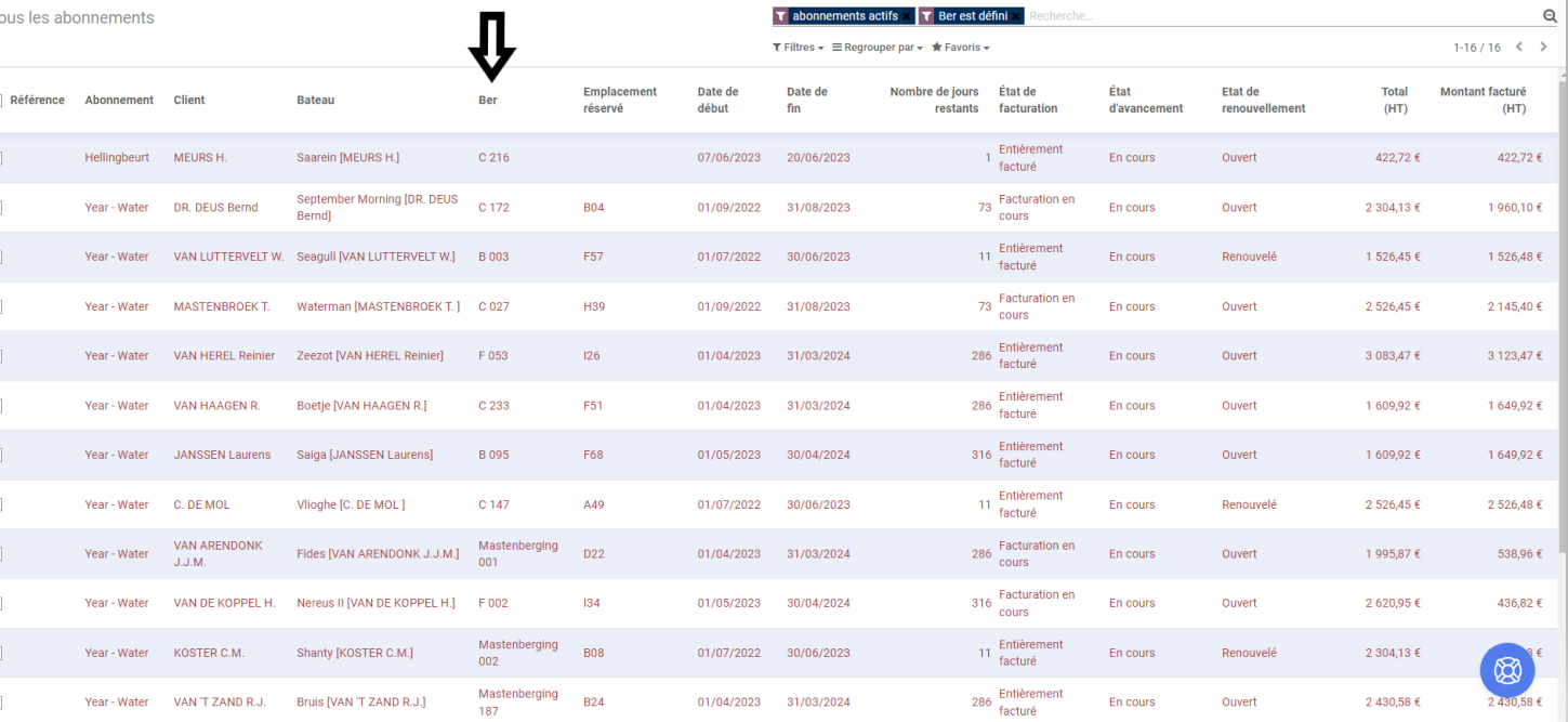 - Ajout des informations du ber réservé dans la liste des contrats.