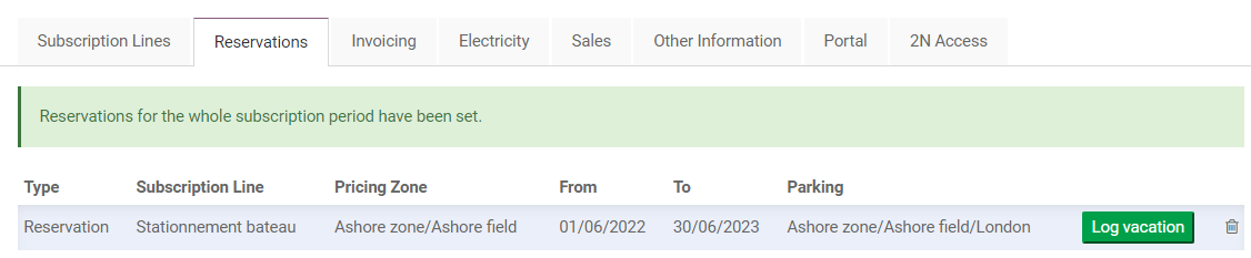 Le contrat a déjà été créé, mais le bateau arrive avant la date de début du contrat, et on souhaite donc lui réserver la place avant la date de début de son contrat.