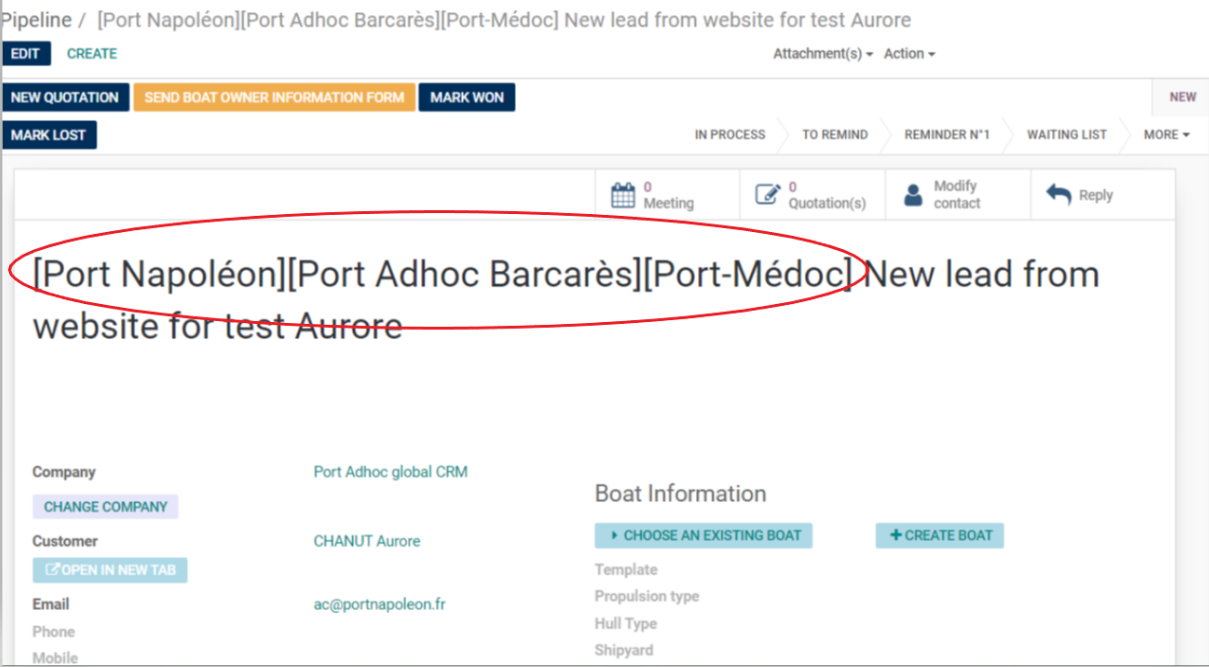 - Lorsqu'un prospect fait une demande sur le site internet Port Adhoc, il a le choix de sélectionner plusieurs port. Désormais, le nom des ports sélectionnés s'affiche dans le sujet.