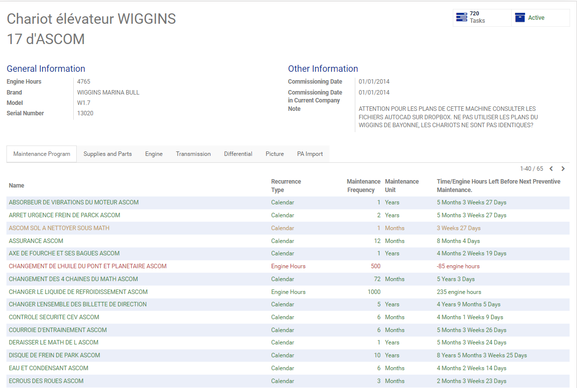 - Résolution d'un bug sur le calcul du temps des heures moteur restant avant le prochain entretien préventif.