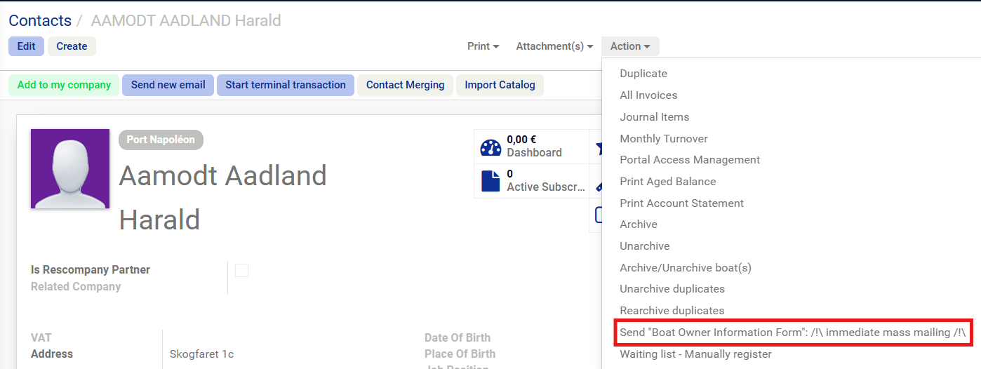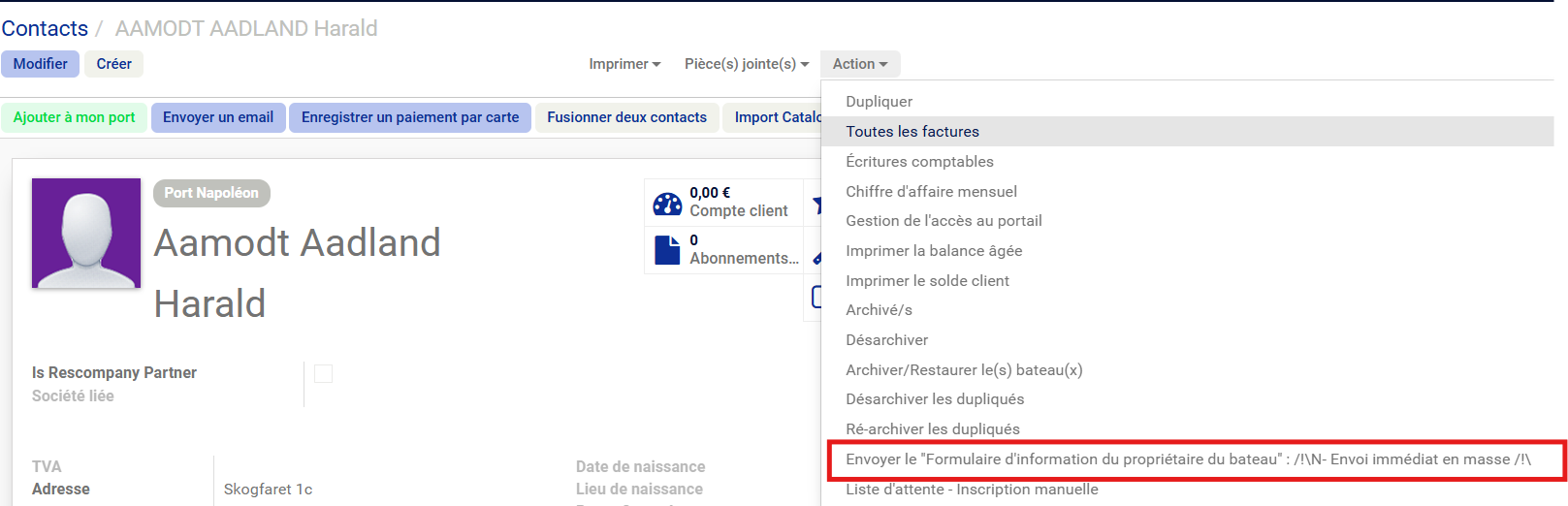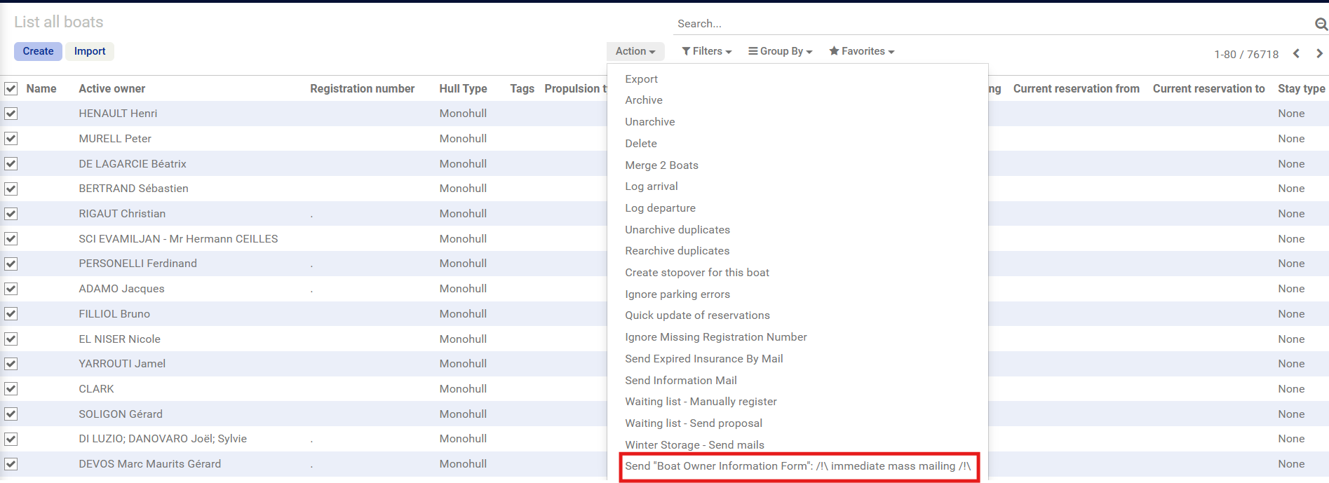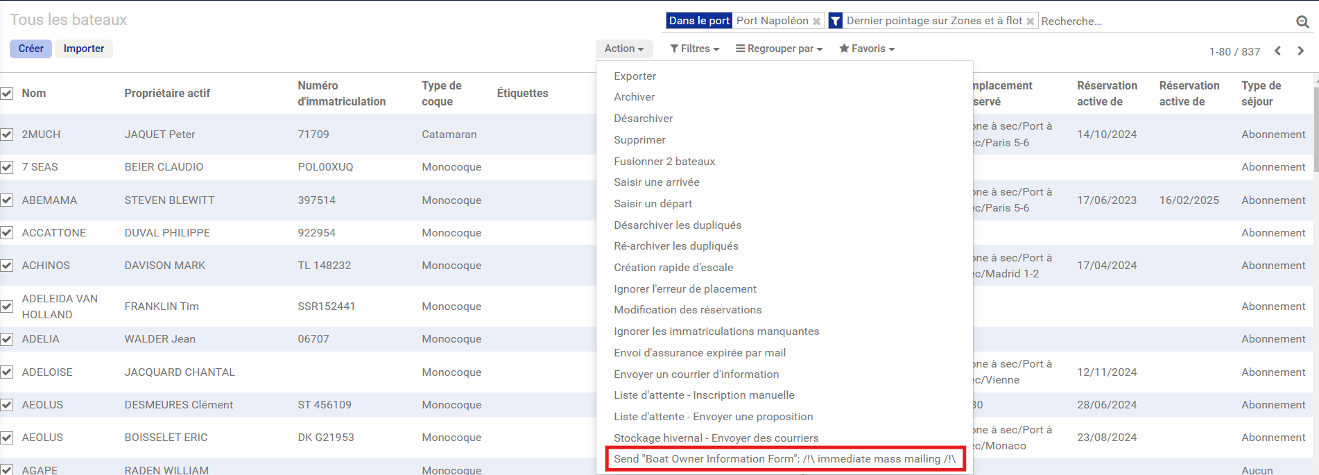 Ce bouton permet d'envoyer plusieurs formulaires en même temps en passant par la vue liste des fiches contacts mai aussi part la vue liste des bateaux :