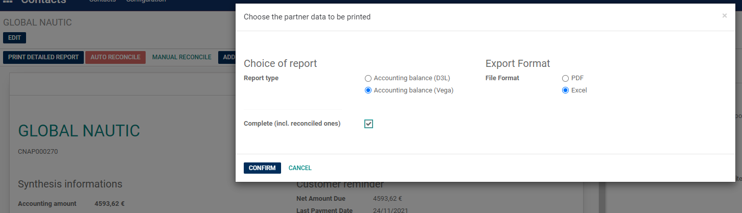- Possibilité d'imprimer un relevé de compte en Excel.