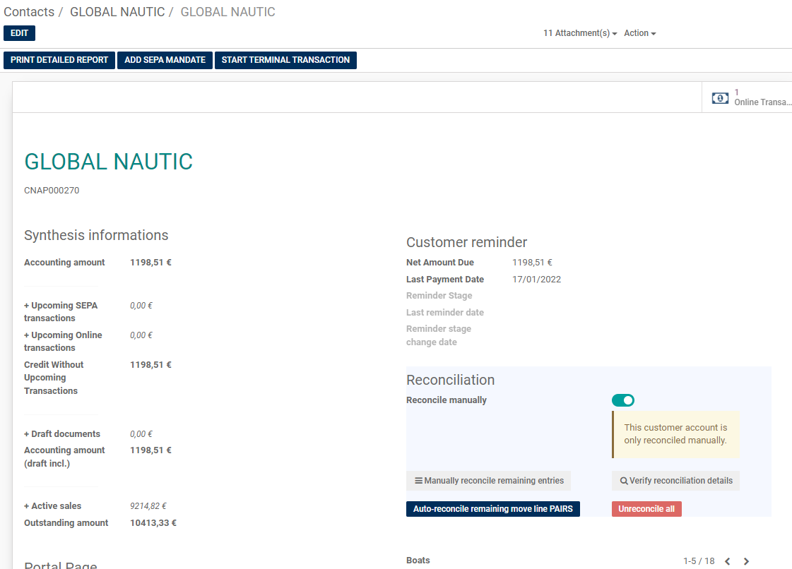 - Possibilité de cliquer sur le bateau afin d'obtenir le détail du bateau et du client.