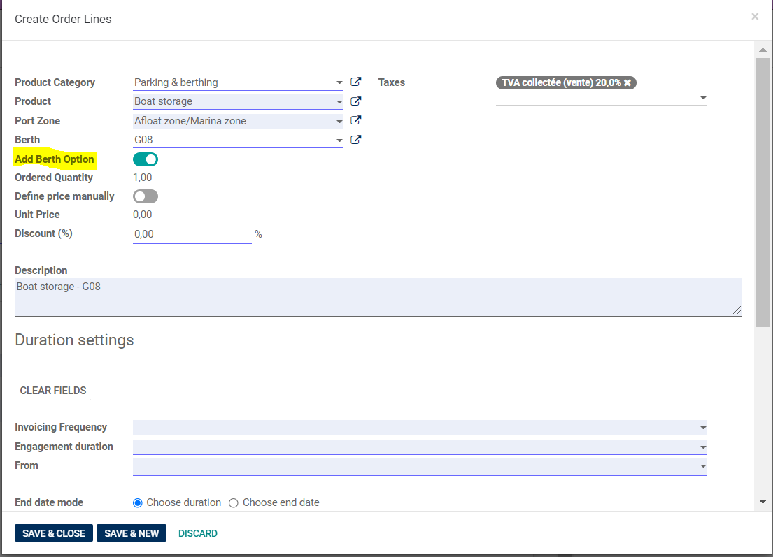 3. Envoyer le devis par mail au client. Une fois le devis envoyé, une nouvelle catégorie sur le tableau de bord apparaitra " Gestion des options des places à flot" et celui- ci s'affichera dans une sous catégorie "Options en cours"