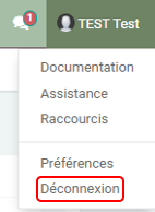 Pour se déconnecter, cliquer sur le nom en haut à droite, puis sur Déconnexion.