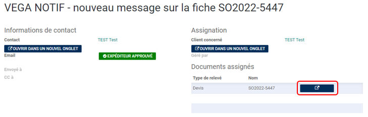Ouvrir le mail et cliquer sur le rectangle bleu pour ouvrir le devis :