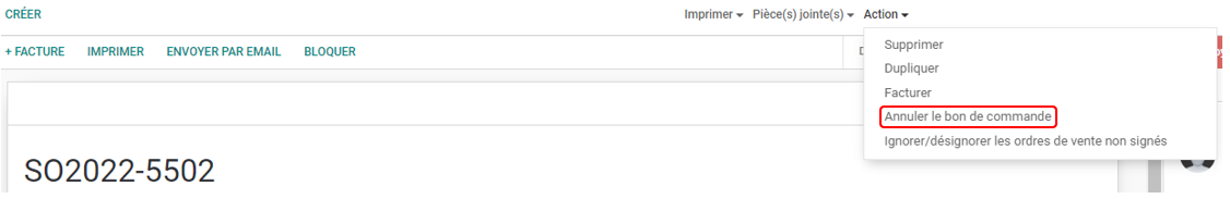 Pour annuler l'option cliquer sur Annuler le bon de commande. Annuler le bon de commande rendra la place de nouveau disponible.