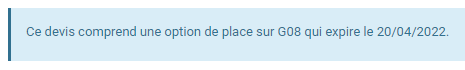 La place sera réservée pour une durée d'un mois à partir de la date de création du devis.