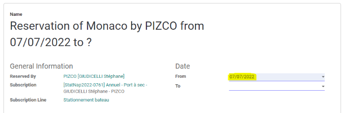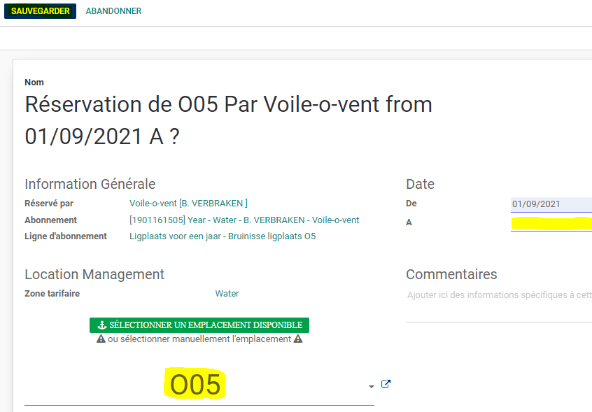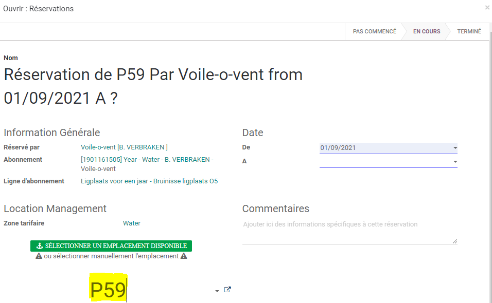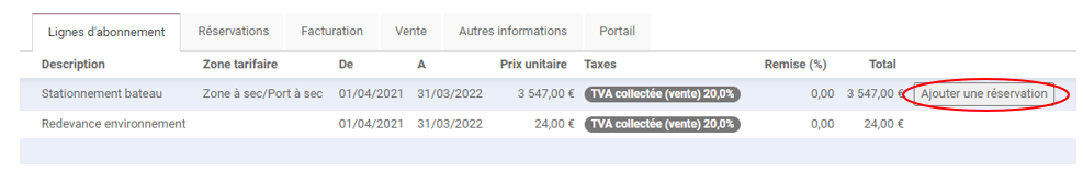 Pour ajouter une réservation supplémentaire, cliquer sur Ajouter une réservation. Si le contrat a été créé avec une place, il faut d'abord sauvegarder avec cette place avant de pouvoir la modifier.